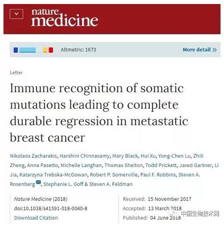 近日,科學家開發的一種新型免疫療法,使一位乳腺癌晚期患者的癌細胞完全消退,并且效果已維持了近2年。而在此之前,該患者已嘗試所有常規治療方法,且都以失敗告終。這項研究由美國國立衛生研究院(NIH)國家癌癥研究所(NCI)Steven Rosenberg博士領導。研究結果已于6月4日發表在《Nature Medicine》上。