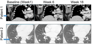 一開始,研究人員采用瘤內注射的方式,對患者進行溶瘤病毒治療。6周后,開始靜脈注射應用PD-1抑制劑。到第18周時,各期患者原發灶腫瘤及轉移灶腫瘤均有消退反應。