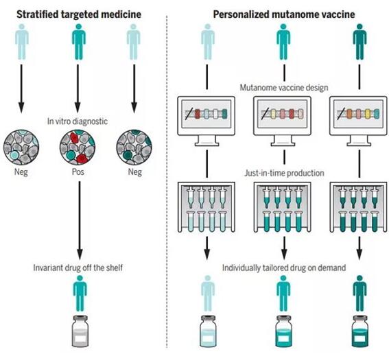 在《科學(xué)》雜志的這篇綜述中,作者UgurSahin博士與ÖzlemTüreci博士指出在目前的語(yǔ)境下,“個(gè)性化治療”往往是“患者分層”的同義詞。根據(jù)患者的生物標(biāo)志物進(jìn)行分組并展開特定的治療固然是一大進(jìn)步,也取得了良好的效果,但從狹義上看,這種治療理念還沒有做到真正的“個(gè)體化”。而且我們也不能忘記,許多癌癥患者并沒有可用來分組的生物標(biāo)志物,他們同樣需要行之有效的療法。在這一點(diǎn)上,癌癥疫苗可能帶來突破。