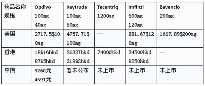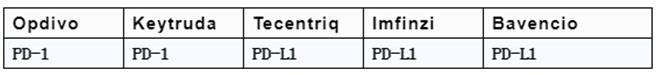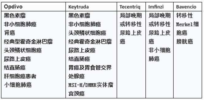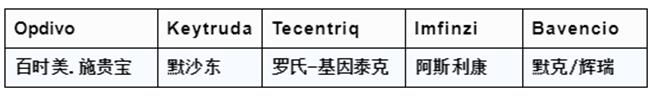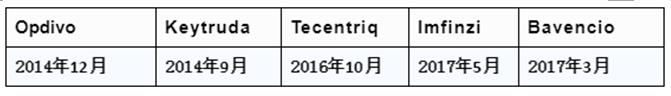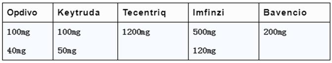 目前,全球上市的免疫檢查點抑制劑PD-1或PD-L1抑制劑共5個,
